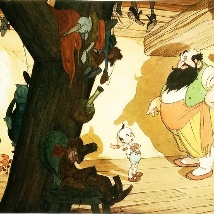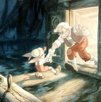《木偶奇遇記》是迪士尼動(dòng)畫在《白雪公主和七個(gè)小矮人》大獲成功后制作的第二部動(dòng)畫長片。它以傳統(tǒng)三幕劇的形式對原著內(nèi)容進(jìn)行了大刀闊斧的刪減與改編,比如把蟋蟀先生設(shè)定為匹諾曹的“良心”,引導(dǎo)他明辨是非,串聯(lián)起整個(gè)故事,增加了小貓菲利普等角色,整個(gè)作品更加充滿童趣。