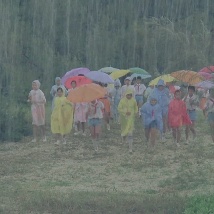 《快樂(lè)島奇遇》的劇本原名為《真假營(yíng)長(zhǎng)》,夏令營(yíng)里兩個(gè)長(zhǎng)得一模一樣、真假難辨的“營(yíng)長(zhǎng)”,固然有喜劇因素,然而生活依據(jù)卻不足,接受劇本后有一段時(shí)間我也因?yàn)楣适碌恼鎸?shí)性不足而缺乏創(chuàng)作的自信。修改劇本的過(guò)程中,我忽然悟到,孩子們生來(lái)都有同樣美好的天性,純真、向上、竟?fàn)幮詮?qiáng),同時(shí),孩子們由于生活環(huán)境不同而人各有貌,性格各異,如果把孩子們的“相像”和“不同”推到極致,影片的主題不是可以得到飛躍和升華嗎?為此,我設(shè)計(jì)了一個(gè)令人意外卻又理在其中的尾聲:在夏令營(yíng)即將結(jié)束的時(shí)候,無(wú)數(shù)個(gè)長(zhǎng)得一模一樣的孩子相聚在夏令營(yíng)里,真是名符其實(shí)的“快樂(lè)島奇遇”。這個(gè)偌大的場(chǎng)面既是震撼人心的影象奇觀,又是影片懸念的注釋和升華。正像歌中所唱的:“我們相聚在陽(yáng)光下,我們相聚在大海上,請(qǐng)不要說(shuō)我們陌生,我們是這樣地相像,請(qǐng)不要說(shuō)我們不同,我們都有金色的年華?!边@一段落,形成影片的視覺(jué)高潮和思想內(nèi)涵的集中體現(xiàn),有了這一構(gòu)思上的突破,我頓時(shí)感到豁然開(kāi)朗。我對(duì)這個(gè)結(jié)尾傾注了巨大的熱情和希望,為了拍這場(chǎng)戲,我們從全國(guó)各地找了幾十對(duì)“孿生”的男孩子和女孩子,把他們帶到外景地,精心地拍攝“相聚”這場(chǎng)戲,所耗費(fèi)的經(jīng)費(fèi)和精力是值得的。有的專(zhuān)家看了影片,稱(chēng)這個(gè)結(jié)尾是“神來(lái)之筆”。這是過(guò)譽(yù),但是,實(shí)事求是地說(shuō),作為導(dǎo)演,我不能設(shè)想這部影片沒(méi)有或者以別的處理來(lái)取代這個(gè)結(jié)尾。放映的效果證明,每到這一段,觀眾的反映是最強(qiáng)烈的,它無(wú)疑大大地增強(qiáng)了影片的新鮮感和可看性,也加深了影片的藝術(shù)魅力和主題內(nèi)涵。更可喜的是,連小觀眾也看懂了這場(chǎng)大聚會(huì)的含義,影片結(jié)束時(shí),他們不再去追究“兩個(gè)高?!睘槭裁磿?huì)長(zhǎng)得一樣又同名同姓,而是沉浸在無(wú)數(shù)個(gè)長(zhǎng)得一樣的“高海”歡聚的欣喜里,同時(shí)也沉浸在“孩子們本來(lái)都一樣,又都不一樣”的思索之中。[1][1]