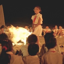 《快樂(lè)島奇遇》講了一個(gè)發(fā)生在九十年代少年兒童夏令營(yíng)中的故事:兩個(gè)長(zhǎng)像一模一樣、同名同姓但出身、環(huán)境、性格又迥然相異的孩子在夏令營(yíng)里“奇遇”了,在他們之間的競(jìng)爭(zhēng)和較量中發(fā)生了一系列妙趣橫生的故事,這些故事告訴孩子們要爭(zhēng)取上進(jìn)、勇于在實(shí)踐中成長(zhǎng)、克服虛榮、珍惜友誼。這無(wú)疑是個(gè)傳統(tǒng)的兒童話(huà)題,我無(wú)意將這個(gè)傳統(tǒng)的話(huà)題加以復(fù)雜化、“深刻”化,需要做的僅僅是使今天的孩子們能愉快地接受它?!爱?dāng)代色彩”是使這個(gè)傳統(tǒng)話(huà)題具有新意的關(guān)鍵。因此,我竭力使這部影片的人物形象、環(huán)境、語(yǔ)言、情感、思維都是新的,富于時(shí)代感的,我要求展現(xiàn)在小觀眾眼前的夏令營(yíng)一定是中國(guó)的、九十年代的、讓中國(guó)以至全世界的孩子們都為之神往的。為此,我們不辭勞苦選擇了一個(gè)風(fēng)光美麗的海島,我們不惜工本制作了現(xiàn)代夏令營(yíng)的服裝、帳篷、道具,我們竭力挖掘海島的自然美和夏令營(yíng)豐富、愉快的生活,我極力注意使劇中的孩子的語(yǔ)言、行為、情感具有今天的時(shí)代特征。這一切構(gòu)成了一幅現(xiàn)代少年兒童的生活圖畫(huà),人們處處感到新的氣息。有了“當(dāng)代色彩”的包裝,那些“古老的話(huà)題”才有利于孩子們接受,一切看起來(lái)都那么淺近、明朗。然而,敘述的淺近并非意味著主題的膚淺,認(rèn)為兒童片的主題必須也是“淺近”的,這種認(rèn)識(shí)也是偏頗的。事實(shí)上,孩子們有不同的年齡層次,特別是當(dāng)代少年,他們表現(xiàn)出的思維能力和自我成長(zhǎng)意識(shí)往往是我們成年人難以預(yù)料的,他們的主見(jiàn)、對(duì)周?chē)ㄖ饕菍?duì)老師和家長(zhǎng))的批判意識(shí)常常使我吃驚。兒童片的過(guò)份“淺近”亦會(huì)挫傷他們對(duì)知識(shí)和人生探索的興趣,就像我女兒常說(shuō)的“簡(jiǎn)直是對(duì)我們這一代人智慧的嘲弄”。