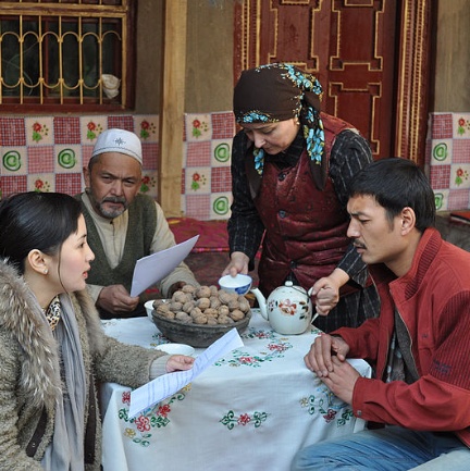 影片的開始導演用了一段新疆少數(shù)民族吉他彈唱曲子作為開場曲拉開了序幕。故事發(fā)生在新疆葉城的阿曼夏村的一戶核桃人家,他們依靠祖輩遺留下的核桃販賣為生,歷代如此,當然吐魯洪也不例外,所以經常勸說兒子阿迪力能繼承傳統(tǒng)幫家里賣核桃。年輕的阿迪力心思不在這兒,他想跟著朋友一樣到城里去做生意,對賣核桃絲毫沒有興趣,為此父親很懊惱。起初阿迪力在村里干起了出租這份差事,接送每天城里于村里來往的客人??粗约旱搅嗽撜劵檎摷薜哪挲g,父母托阿迪力舅舅給他介紹了門親事,而阿迪力對于感情更是有自己的想法和主張,他堅持要跟自己喜歡的阿依諾爾,那個曾經小時候在一起上下學,后來因為家里的原因搬走離開他,現(xiàn)在靠每天靠水磨磨成面粉賺錢,外表艷麗漂亮的她在一起。雙方彼此都很喜歡,可事情沒有想象的那么好,女孩因為家里貧窮,母親的病欠下了很多的債,在這節(jié)骨眼上家里的舅舅幫著阿依諾爾給說了門親事,是村里一戶較有錢的人家,承諾只要阿依諾爾嫁過來,便幫著把欠下的債全部還清。為了母親好轉,阿依諾爾是沒有辦法的,只能默默地順著家里的意思走。知情的阿迪力痛苦萬分,只要是能得到阿依諾爾,他什么都做的出來。起初要變賣自己的出租車,他知道除了錢沒有辦法能夠解決這件事,這也正好合了在他背后出謀劃策的大漠的意了。大漠跟葉子是內地來的兩個年輕人。大漠到葉城是為了尋找千年核桃樹,用來做古典家具或藝術收藏品;葉子是收集大量的核桃,提取精華做營養(yǎng)品。兩人同時到了這里,而尋找的目標都是阿曼夏村阿迪力家的核桃樹。起初兩人關系還不錯,可紙包不住火,某一天這層紙被捅破真相大白后,兩人的競爭開始了。兩人各有各的任務和計劃,在金錢利益面前你爭我搶。而面對這兩個人,阿迪力更靠大漠更近一些。因為阿迪力知道大漠給的條件要在葉子之上,恰恰大漠就抓住了阿迪力的情感糾葛的把柄后著重在這方面做工作,不斷的鼓勵阿迪力不能放棄阿依諾爾,只有不放棄阿依諾爾,大漠才有機會贏得這次勝利;同時進展的葉子也毫不遜色通過種種辦法找到了阿迪力的父親,并與父親基本談妥了合同的事情。合同的決定權在吐魯洪手上,千年的核桃樹是祖祖輩輩傳下來的,靠樹生根發(fā)芽是歷代的傳統(tǒng),所以吐魯洪對樹的保護意識大于任何值錢的東西,面對大漠的提出購樹條件,父親斷然是離開,他倒是愿意跟葉子簽下合同,因為她不會傷害到樹的本身,還可以賺少量的人民幣。得意洋洋的葉子就在于父親簽下合同的當天,在現(xiàn)場的阿迪力用維語跟父親撒了個謊,騙父親說簽了合同,樹就歸葉子了,事實葉子可沒有說過這話,只能怪葉子不懂維語。只要涉及到樹主權的問題,父親半個字都不會說,扭頭便走,那天也一樣。葉子被父親這一舉動搞的一頭霧水,看著突然生氣的父親便察覺有問題,于是又找了翻譯弄清楚這件事后,再次來到父親面前簽合同時,這時父親反到要考慮下了。在近期的日子里,父母兩人看著寢食難安的阿迪力心里也不好受,可憐的阿迪力常常一個人呆在一進屋幾乎沒路走的房間,拿著吉他唱著情歌,默默地思念他的心上人,阿迪力也無數(shù)次地向父親敞開心扉述說自己的意圖。面對幾乎崩潰的兒子,面對祖輩傳下來的核桃樹,難以取舍的兩者間,經過了幾次思想斗爭后,他選擇了兒子,放棄了核桃樹,決定把樹交給大漠了。事后渾然不知的葉子很生氣,找大漠想問清楚事情的究竟,大漠并沒有使出任何卑鄙的手段,他開始是這么做的,到最后一直也是做的,可葉子并不這么認為,在情緒不冷靜的情況下,說了很多心里話,勸大漠不要砍樹,讓他保留點同情心。葉子的話語并不能改變大漠的決定,他還是進行著他的砍樹計劃。就在砍樹的那天,坐在樹下的吐魯洪和他的妻子,父親手里拿著都塔爾含淚忘情的歌唱著新疆維族民歌,旁邊坐著的母親也不在不斷地擦掉自己的淚水,他們的淚水在冬日的寒冷空氣中顯得是蒼白無力的。整片核桃園子蕩漾著父親的琴聲與歌聲,就像是在送別自己的親人一樣的凄慘。站在旁邊的阿迪力雖然是能夠如愿賣樹得了錢可以得到阿依諾爾,但看到傷痛欲絕的兩位老人,一樣滿臉惆悵。這一幅幅畫面,一個個表情看在了大漠的眼中,大漠整個人靜止了,被這一幕驚呆了,因為這種情景在內地經濟發(fā)展快的城市中是看不到的,為了樹而哭泣就好像失去親人一樣的難受,大漠意識到奪走了他的樹跟奪走他的命和親人沒有區(qū)別,這一刻大漠的心靈被這一幕凈化,得到了啟示得到了渲染。對于之前所付出的構思謀劃,直到眼看就勝利的那一刻,他放棄了。核桃樹下的故事,描寫了現(xiàn)今社會中,在新疆南疆一個偏遠的山區(qū)里,住著一群樸質的人們,于生活在優(yōu)越城里的人相比下,可以說他們離大自然更近一些,這里幾乎沒有任何現(xiàn)代化的東西,完全處在封閉狀態(tài)。但他們在積極地生活,對于生活他們有自己的人生價值觀,包括愛情和理想。導演把維族的音樂和細膩到位的拍攝手法融入了電影中,充分地表達了這部電影的主題思想。在如今,大自然原生態(tài)的事物逐漸被破壞,所剩不多,我們又處在競爭激烈的經濟發(fā)展社會中,在金錢利益的面前,如果你是片中大漠,你會做出怎樣的選擇?