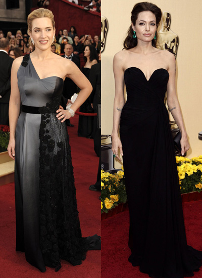 相比于去年一水兒的希臘式單肩禮服,今年的紅毯上是low-cut低胸長(zhǎng)裙占絕對(duì)主流,除了影后凱特·溫絲萊特、獲得最佳女配角提名的瑪麗莎·托梅以及“貧民窟”美女芙蕾達(dá)·平托外,幾乎所有的女星都以此造型亮相。緊隨著紅毯的結(jié)束評(píng)出的“最佳紅地毯著裝”獎(jiǎng)項(xiàng)中,藍(lán)黑禮服的凱特·溫絲萊特與黑色長(zhǎng)裙的安吉麗娜·朱莉雙雙摘得了桂冠,“肥溫”總算在奧斯卡上也“雙響”了一回,可謂春風(fēng)得意。下面讓我們一起來欣賞一下此次紅毯的精華片段,看看她們今晚到底穿了什么?