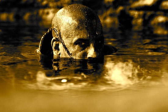 戴維·巴蒂斯塔貼身肉搏,金黃的色調(diào)使畫面充滿了幻想色彩。