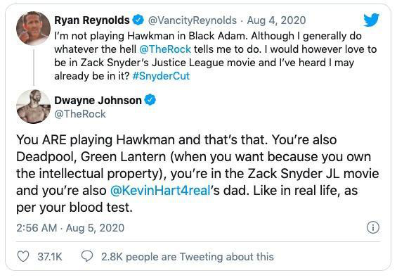 關(guān)于《綠燈俠》的笑話沒有結(jié)束,之后小賤賤還在推特上cue到了道恩·強(qiáng)森,“我沒有要在《黑亞當(dāng)》中飾演鷹俠(Hawkman),盡管一般情況下,巨石強(qiáng)森讓我干什么我就干什么。但我很愿意成為扎克·施奈德剪輯版《正義聯(lián)盟》中的一部分,我聽說我已經(jīng)在里面了?#扎導(dǎo)剪輯版”