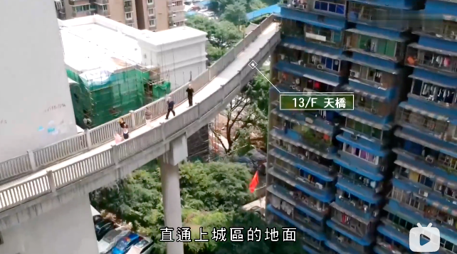 而為了方便居民溝通,重慶又在不同高度的樓房之間修建了各種連接通道,所以出現(xiàn)了特有的公共道路從大樓內外穿梭的情況。