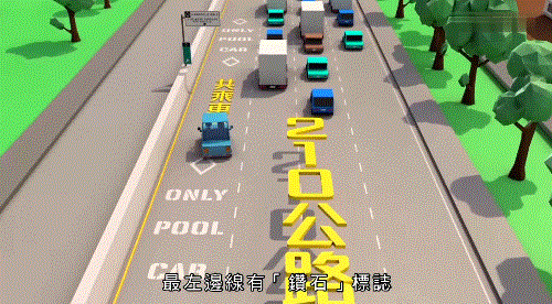 美國公路上有一條車道專門叫做共乘車道,規(guī)定車中必須最少坐兩個人才能走,違反就罰款。