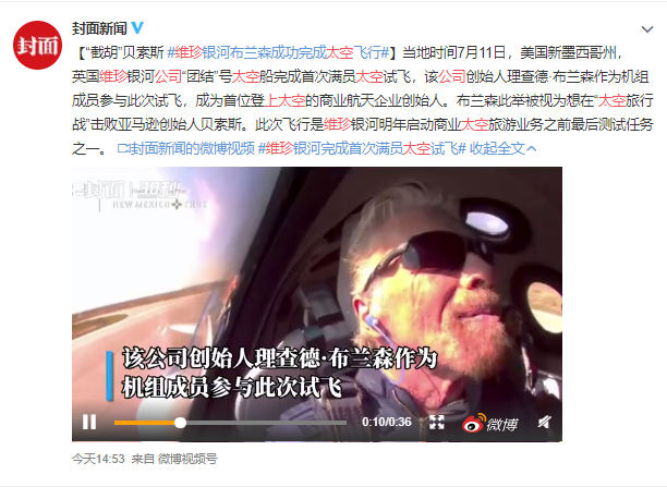 對了,這位富翁前天剛剛因為乘坐自家的飛船上了太空而上了熱搜。