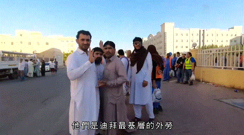 他們每天乘坐擁擠、不安全的輪渡、大巴,在迪拜四十度的高溫下,進城務工,早出晚歸。
