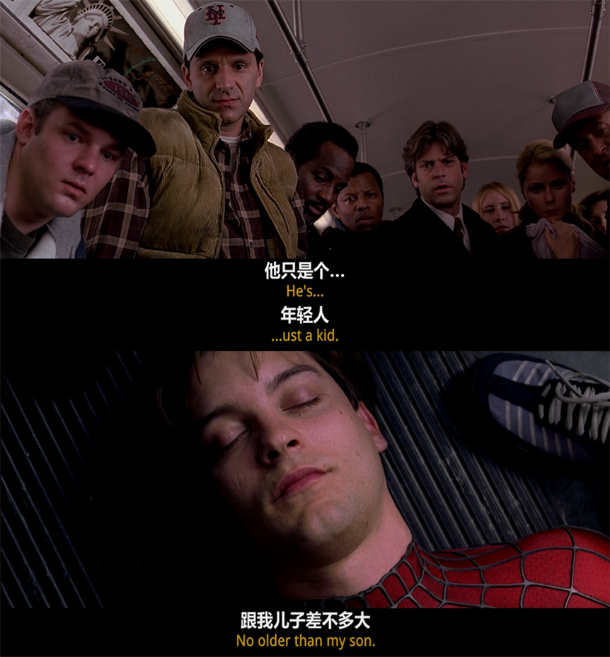 《蜘蛛俠2》中,托比蟲用自己的身體阻擋列車墜海。