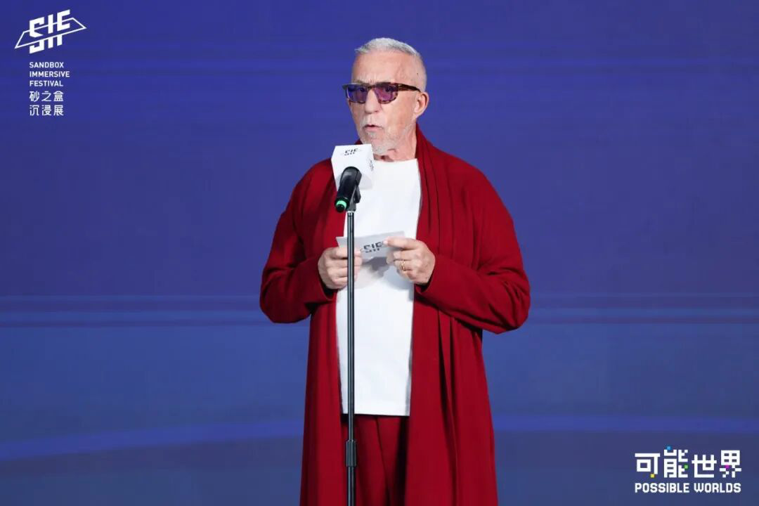△ 威尼斯電影節(jié)沉浸單元的策展人Michel Reilhac上臺(tái)發(fā)表頒獎(jiǎng)詞