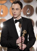 吉姆·帕森斯獲喜劇類最佳男主角 興奮親吻獎(jiǎng)杯