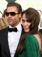 皮特夫婦牽手紅毯 朱莉閃亮綠色長(zhǎng)裙小露美背