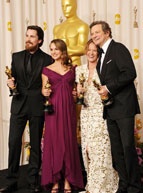 《國王的演講》獲得最佳影片 眾主創(chuàng)后臺秀獎杯