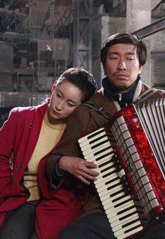 《鋼的琴》中的音樂絕對(duì)堪稱經(jīng)典,結(jié)合得相當(dāng)完美。落魄的工人卻彈著鋼琴、拉著手風(fēng)琴、唱著俄文歌曲,如此充滿藝術(shù)氣息,讓人感到如此格格不入,這種反差,從而又形成巨大的沖擊力。